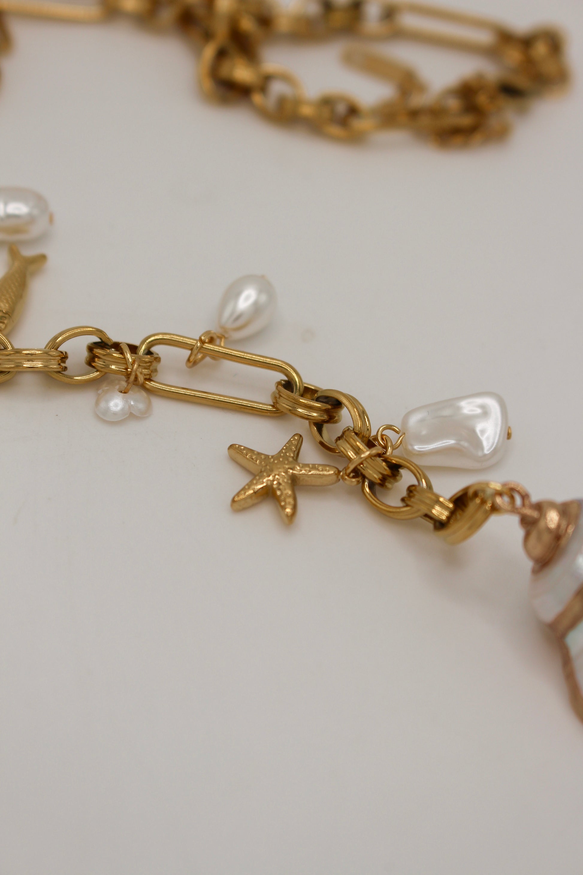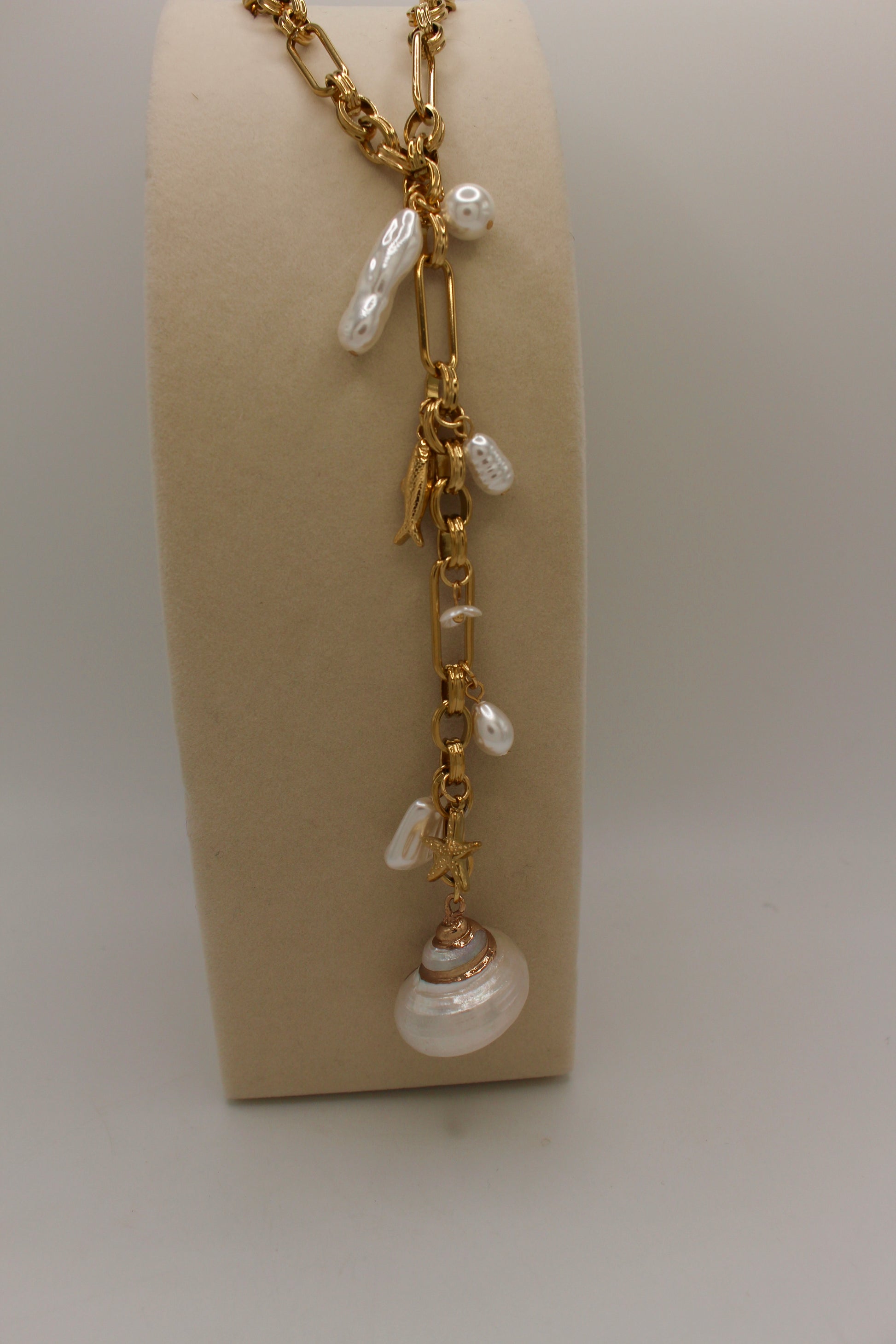 - Gem type: faux pearl & seashell